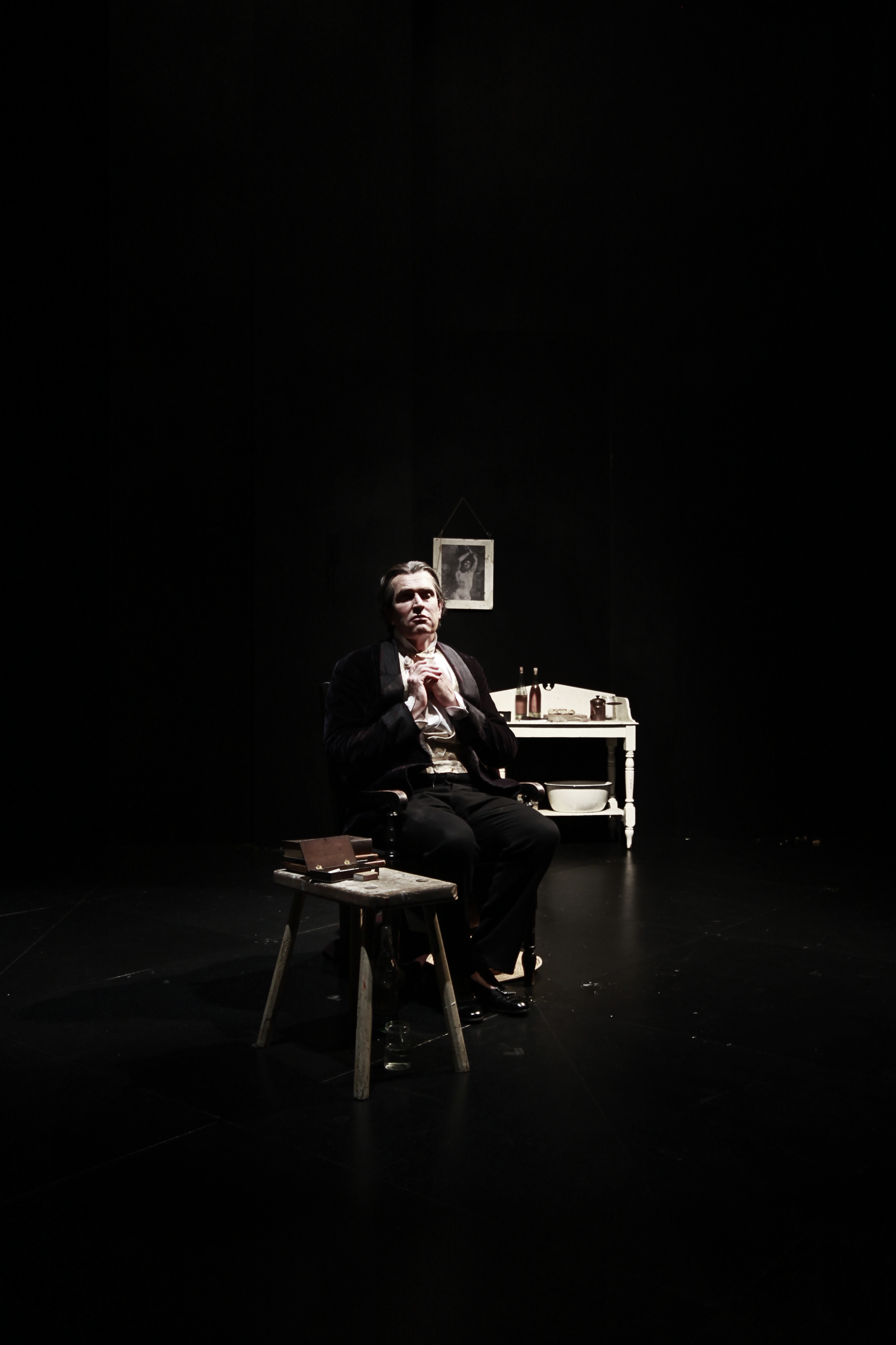 The final scene in “The Judas Kiss” is a dark and lonely Oscar Wilde monologue, and as such there had to be negative space engulfing him for the image to work.
